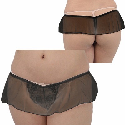 レディス シースルースカート付きレース刺繍Tバック ブラック ブラック