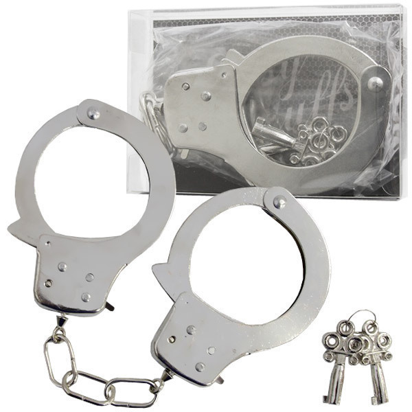 ポリスコスチュームのお供に必須!適度な重さと質感が扱いやすい手錠「イージーカフス」。 コスプレをするなら、やっぱり小道具までこだわりたいところ!こちらの手錠は、付属の鍵(2個)が無くても解錠される仕様になっているので、気軽に使えるのがポイントです。
