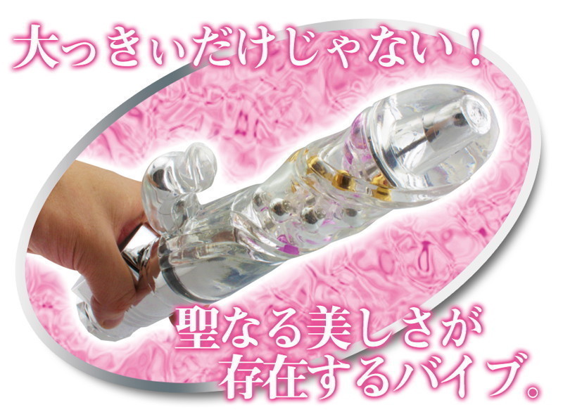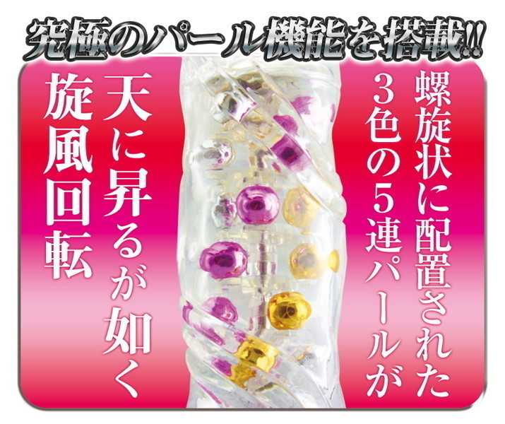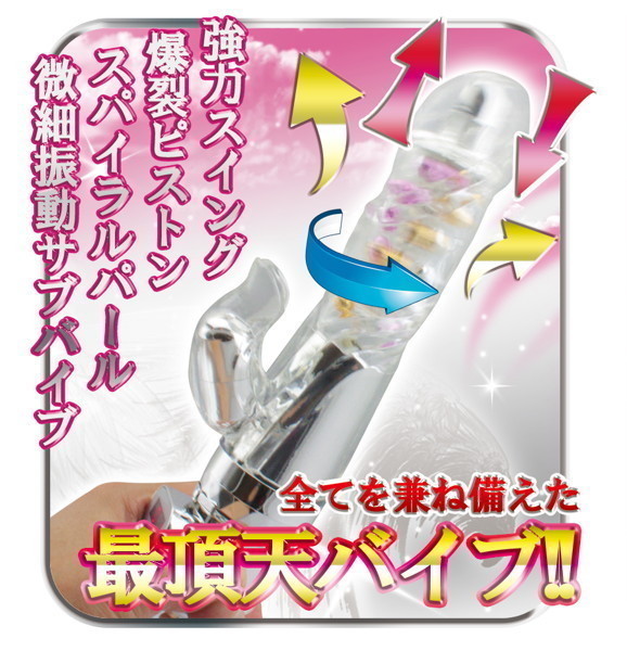 螺旋状に配置された内蔵パールは、まさに天に昇っていくかのよう!独特フォルムの流線型クリバイブが、細かな振動で優しく刺激してくれます。 さらに、膣内をかきまわす強力スイングはリバース機能も備えています。 美しいクリアボディに秘められた神秘の快感を思う存分お楽しみ下さい。 |