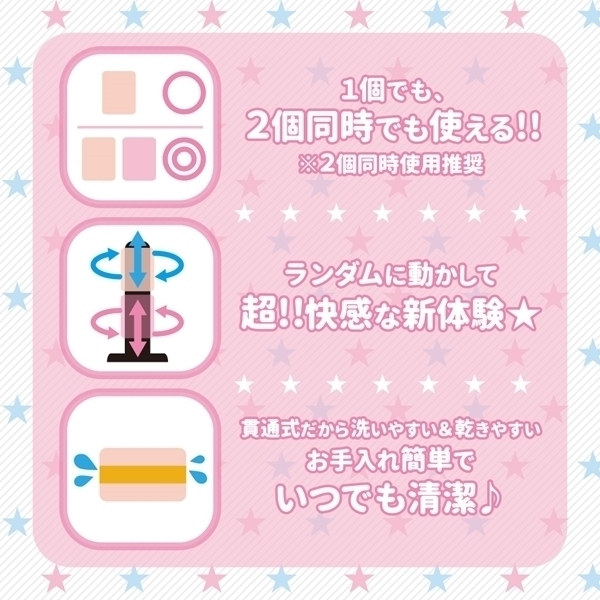 「にこにこいもうと」は360度大小様々なイボが張り巡らされたイボ壁が特徴!全長75mmと小さめに設定されているため、別売りの「やんちゃばーじょん(t10581)」と同時使用することで刺激倍増♪ランダムに動かせば超絶快感が体験できる!捻り、回転、ディープスロートなど好みの刺激をお楽しみ下さい。 お手入れし易い貫通式 |