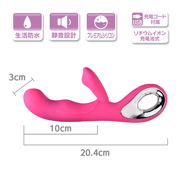 中イキ!潮吹き!とにかく気持ち良いとSNSで話題!大ヒット商品<シリコンバイブ>にサブバイブ搭載タイプが登場!中も外も「どっちもイキ!」がこれからの定番に!?肌触りバツグンの医療用シリコンにIPX5相当の高性能防水に10パターンアクションの強力ダブルモーター振動搭載!60分充電で最大40分使用可能なリチウムイオンバッテリー充電式バイブ。