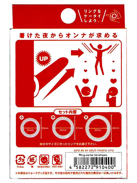 ●純正シリコン素材のリング3個●小サイズ:外径33mm・内径23mm●中サイズ:外径37mm・内径26mm●大サイズ:外径43mm・内径30mm。 勃起力UPや早漏防止に!サイズやお好みに応じて3サイズを使い分けられる純正シリコン素材のソフトリング3サイズセット。 カリ首や根元などお好きな部位に装着することで、様々な刺激を楽しめる男性用補助グッズです。 |