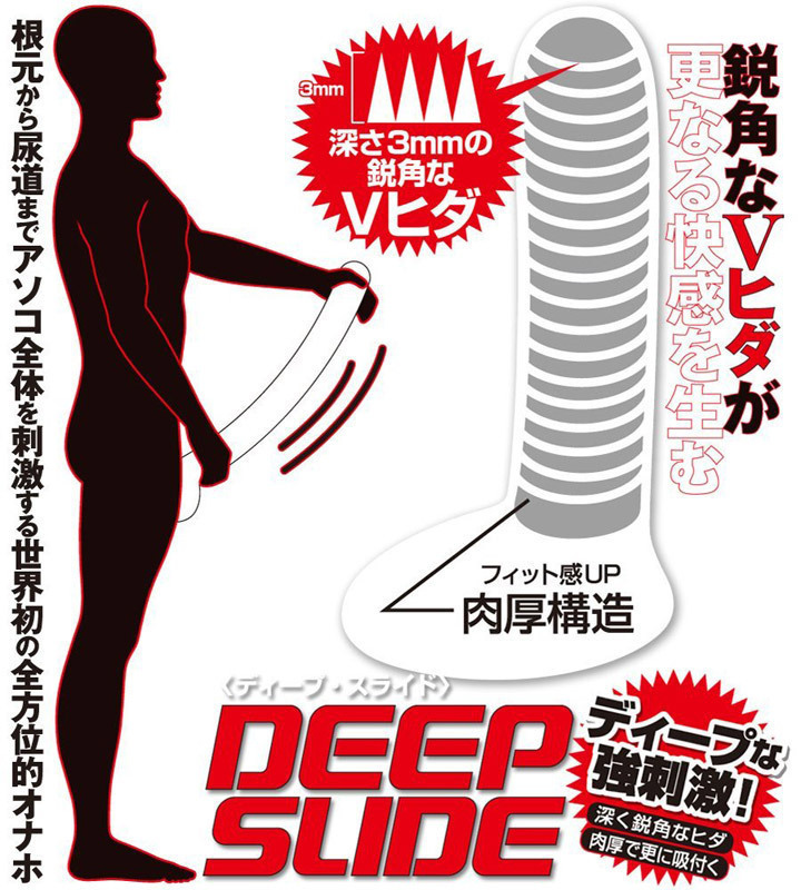 驚異の伸縮オナホがパワーアップ!「ディープスライド」非貫通型は、鋭角なヒダがもたらす強烈な刺激が特徴です♪手で握らずに素材の伸縮を活かし、新感覚のバキューム快感を楽しめるオナホール!内部には高さ3ミリの横ヒダがずらりと並び、ディープな刺激を生み出します。