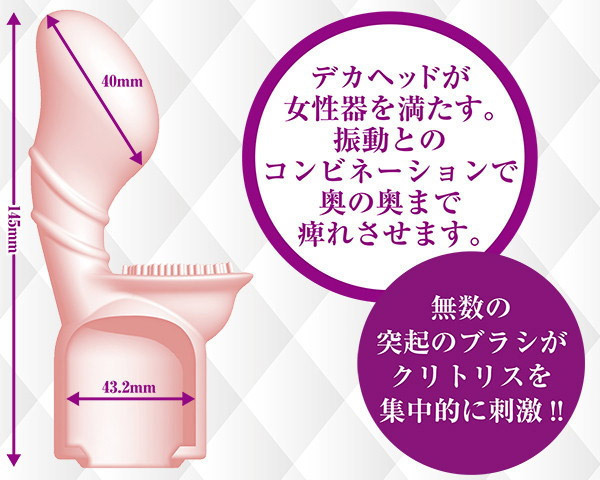 ●ミドルサイズ電マに装着可能●ホールド力高めなフィット感●ズレにくく快適プレイを補助●オルガスター型大きめヘッド●膣内をたっぷり満たして振動●ブラシ突起でクリトリス刺激。 中型サイズの電動マッサージャーにハメるだけ!AVの世界でも活躍するあの強烈振動を、膣内でたっぷり感じられるオルガスター型アタッチメント。 プリッとしたソフトな弾力が電マヘッドにしっかり密着、パワフル刺激を残さず内部へ届けます。 |