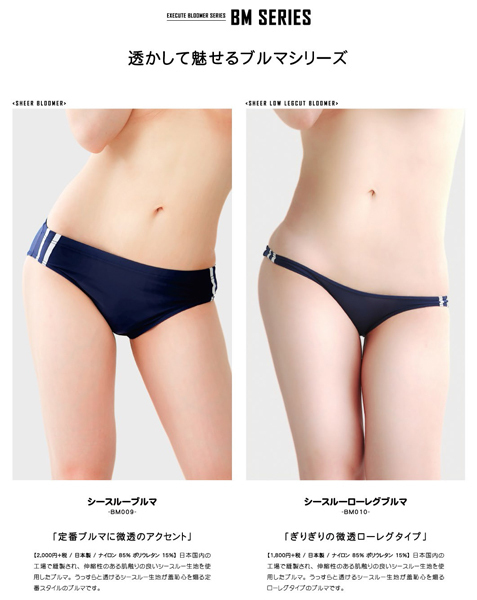 安心の日本国内の工場で縫製された微透感あるブルマでうっすらとお肌が見えるシースルー生地が羞恥心を煽るローレグタイプのブルマです。 |
