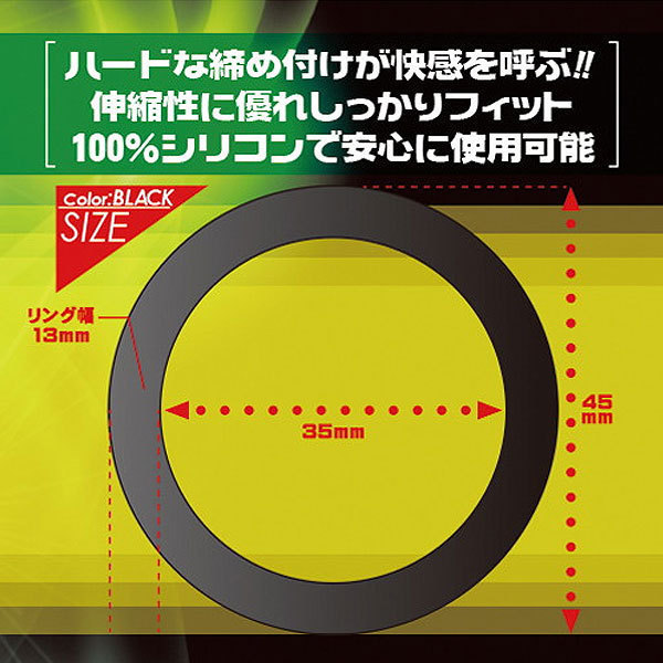 竿と玉袋を通してペニスの根元から締め付ける!φ35mmの内径、適度な伸縮性を持ち、様々なムスコにフィットしてくれます。 パートナーとのセックスやオナホールを使った自慰にて使ってみてください!硬く勃起したペニスは、いつもより感じやすくタフになっているはずです。 |