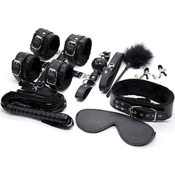 1セットで即SMプレイが楽しめるお得なセット!こちらはクリップやティーザー、手枷と足枷を連結する十字ベルトなどアクセサリーも充実。