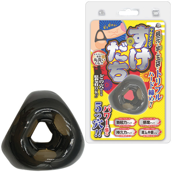 5つの穴で多彩な装着方法を実現したマルチコックリング!伸縮性の高いエラストマー素材を採用しており、ピタッとフィットして勃起力や持久力など男性機能を高めてくれる機能性バツグンのコックリング。