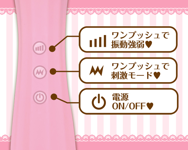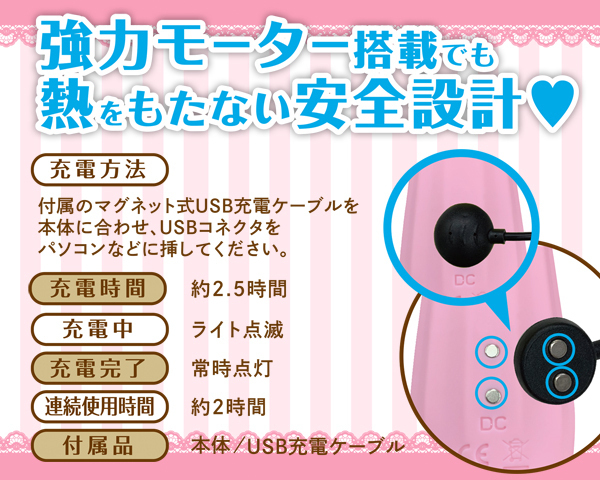出っ張った先端がピンポイント刺激に対応!クリや乳首を責めると同時に周囲までしっかり振動を伝えます。 素材には柔らかなシリコンを採用、振動は5種類のパターンと3段階強弱を搭載!超強力モーターが生み出す快感を貴方も体験しよう♪完全防水、2.5時間充電で2時間連続稼働 |